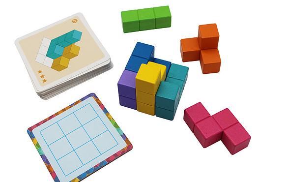 这个跟前面说到的收纳达人有异曲同工之妙,也是包含了空间规划的闯关类游戏。里面包含不同的立体积木,闯关卡会告诉你已知的立方体位置,你需要将剩余的立方体填补到合适的位置,组成一个正方体。