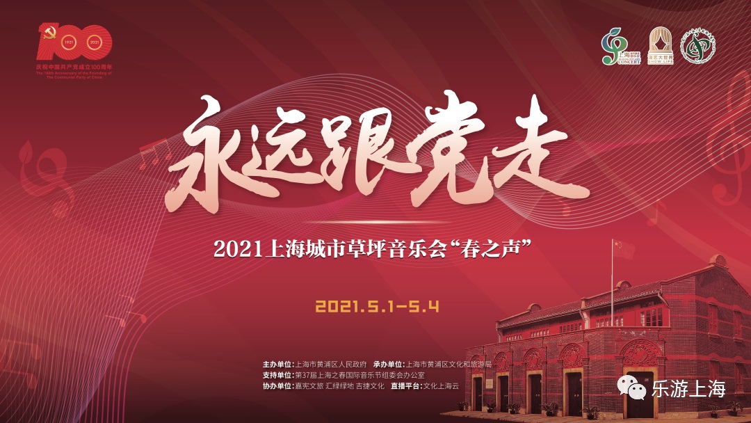 由黄浦区人民政府主办、黄浦区文化和旅游局承办,第37届上海之春国际音乐节组委会办公室支持的“永远跟党走”——2021上海城市草坪音乐会“春之声”活动, 将于2021年5月1日下午在上海城市草坪音乐广场开幕。