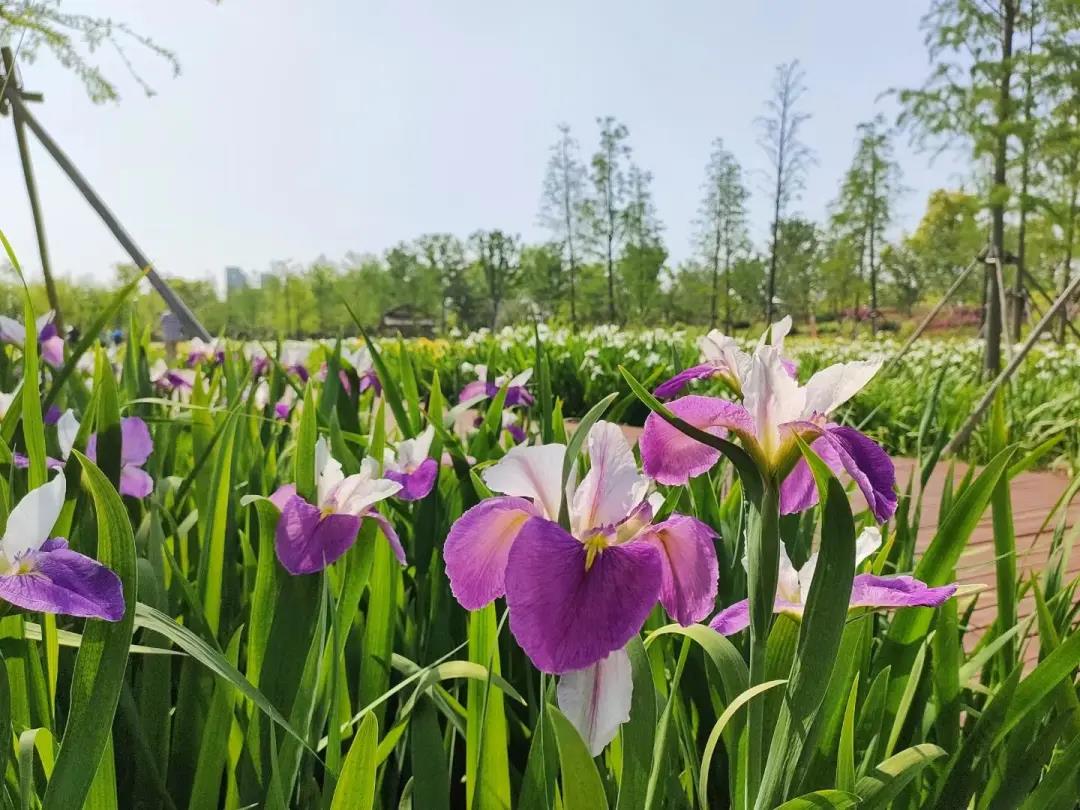 辰山植物园鸢尾园占地面积约4000平方米,按照花期的早晚相继展示有髯鸢尾、西伯利亚鸢尾、路易斯安娜鸢尾和日本鸢尾,共计近360个品种,近期已陆续进入最佳观赏期。