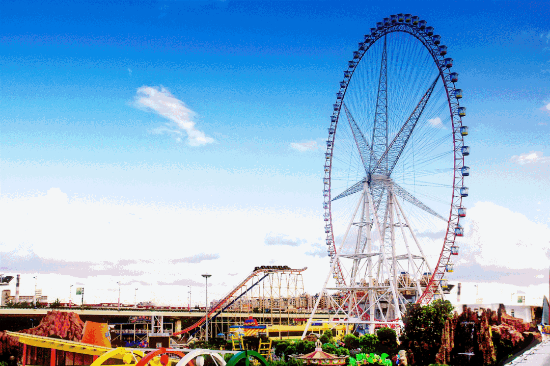 锦江乐园是上海第一家大型现代化游乐园,占地面积170亩,这里有20余项大中型的游乐设施,比如上海最高的摩天轮——108米高的上海大转盘,作为上海的标志性建筑之一,以登高俯瞰下的宽阔视野成为沪上网红打卡地。