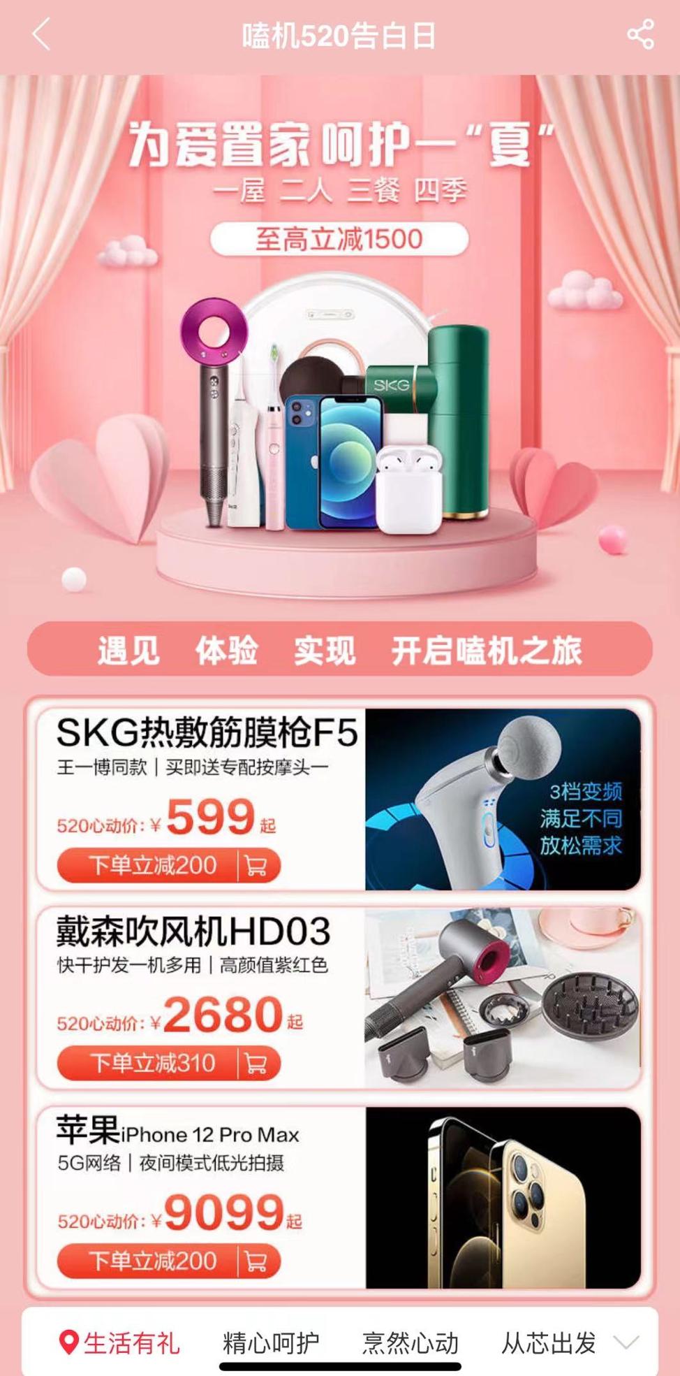 还有主打电子产品“嗑机520告白日”的活动页面。
