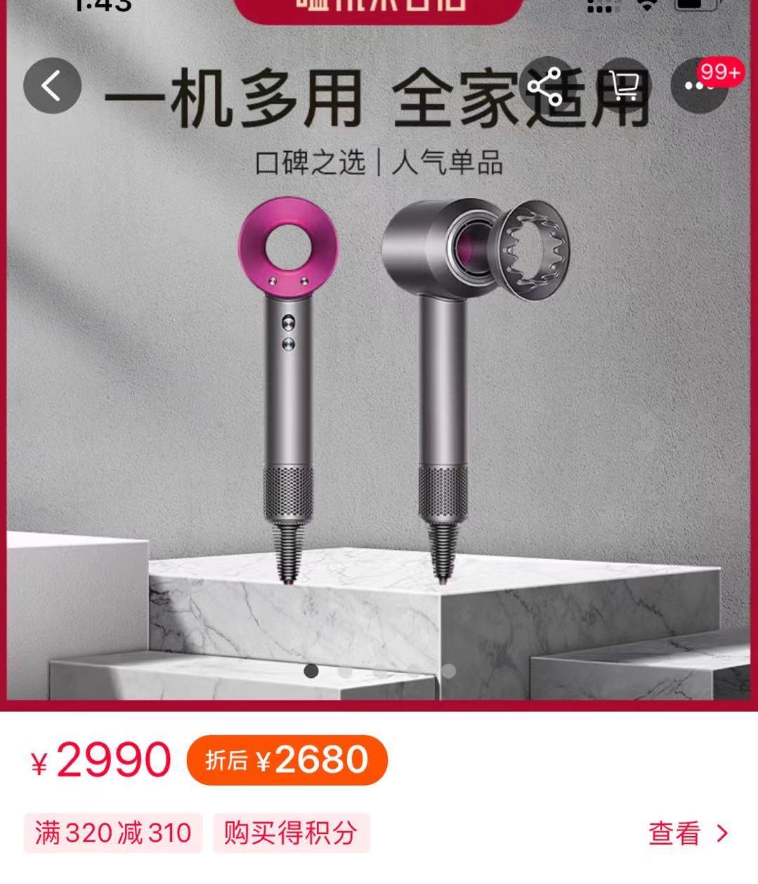 比如戴森吹风机下单立减310元,比京东上要便宜。