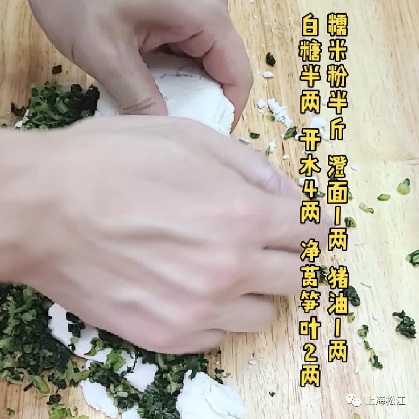 糯米粉250克、捏去苦水的净莴笋叶100克、白糖25克、猪油50克、开水200毫升、食用油20克。