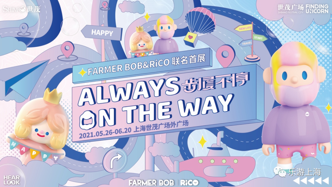 5月26日起,上海世茂广场将携手国内知名的潮玩艺术IP孵化公司——寻找独角兽,以潮流之名开启“ALWAYS ON THE WAY步履不停”全国首个双IP联合主题展。此次展览首聚寻找独角兽中最受欢迎的两大潮玩IP FARMER BOB和RiCO,以前所未有的潮流艺术装置讲述BOB和RiCO的精彩旅途。本次完整版展览近1000平米130幅作品。
