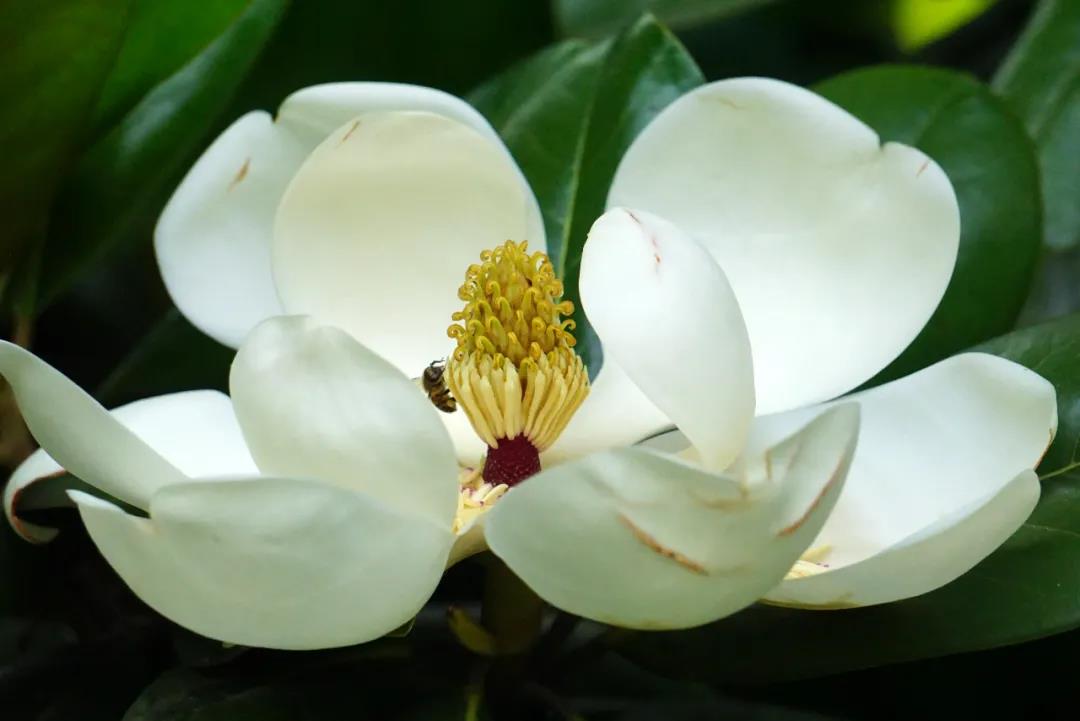 目前木兰属除荷花玉兰正值盛花期外,在上海植物园木兰园内还有荷花玉兰早花品种‘Praecox’和多花品种‘Gallisoniensis’及佛州玉兰(亦称弗吉尼亚木兰)Magnolia virginia的品种‘North Type’正在盛放,花期从5月上旬可持续至6月。