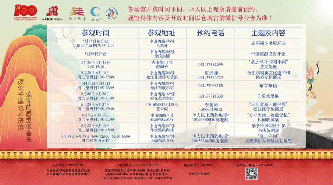 本周,仓城历史文化风貌区内,以“读”为主题的仓城老宅历史文化展全面启动,邑名轩、杜氏雕花楼等10处老宅免费开放。其中,跨塘乘月书苑、华亭雅风印社、上海东八文修三处均为首次开放。邀请大家一起来“读历史”“读建筑”“读文化”。