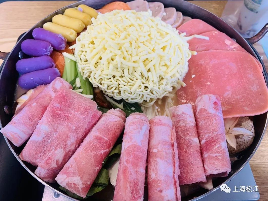 部队火锅是他们家的招牌,食材丰富,里面的泡面充分吸收了汤汁却不软烂,配上芝士,满口浓香。很多人喜爱的年糕,一口咬下去,口中便充满了糯米和芝士的香气。火锅里还有肥牛、午餐肉以及各种蔬菜……