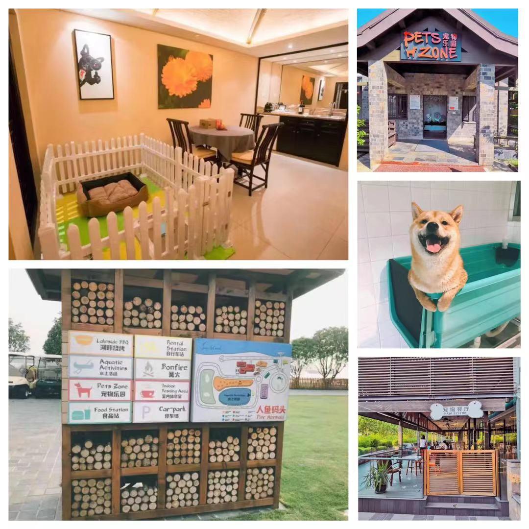 这里有专门的宠物套房和中西餐厅,可以携带宠物一起用餐。3000平方米的室外活动区域,也是给狗狗们撒泼打滚的空间,分为4个小场地的一大片草坪有宠物乐园、123米专业宠物障碍赛道、宠物深浅泳池、蹦床、皮划艇等户外设施。