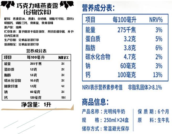 从营养成分上看,每100毫升原味燕麦奶含蛋白质1.0克,脂肪1.5克,碳水化合物6.6克。市面上最常见的利乐装牛奶每100毫升含蛋白质3.2克,脂肪3.8克,碳水化合物4.7克。也就是说同样体积的原味燕麦奶饮料和牛奶相比,蛋白质含量只有其三分之一,脂肪含量少了三分之二,碳水化合物含量则高了五分之二。可见想要补充蛋白质,燕麦奶饮料并不是个好选择,如果是巧克力味或其他品牌的燕麦奶饮料会添加白砂糖,还可能不小心摄入更多的碳水化合物。而牛奶所含的蛋白质、脂肪和碳水化合物比例十分均衡,是膳食中优质蛋白和钙的重要来源,相对更适合饮用。