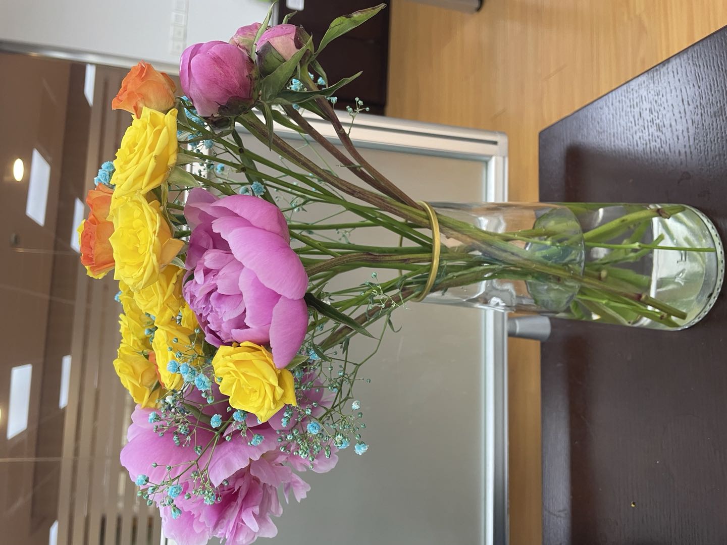 夏季气温高,即使勤换水,花朵也不好保鲜,可以买专门的保鲜剂。我买的保鲜剂一包只要几毛钱,将保鲜剂和水的比例搭配好后,可以一个星期不换水让花朵保鲜。我这次买的鲜花一周没有换水,六朵芍药陆续开放。