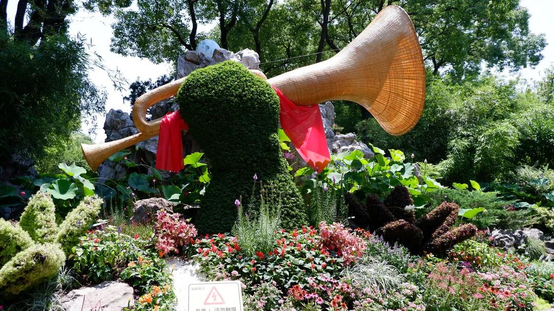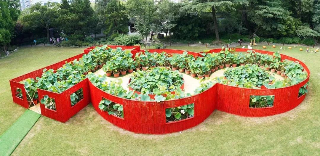 其中最适合打卡的要数中间大草坪的“光照百年”——“100”字样荷景,你既可以登高合影,也可以在荷景中间静静欣赏。值得一提的是,