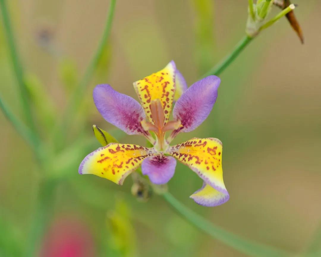 糖果鸢尾是由野鸢尾与射干杂交获得的园艺类群,因其花朵闭合后似卷起的糖果纸而得名。大多数鸢尾属植物的花期在4-6月份,而糖果鸢尾的花期在6-8月,延长了鸢尾属植物的观赏周期能够弥补夏季园林观赏植物少花的缺憾。