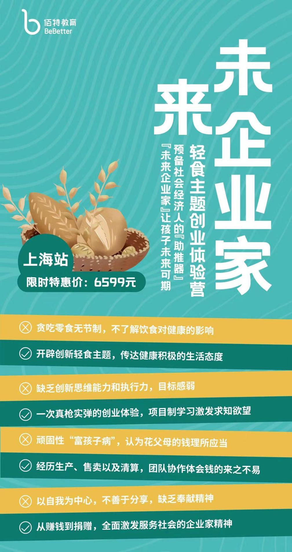 “未来企业家”夏令营上海站 | 轻食主题创业营 8-13岁独立参加