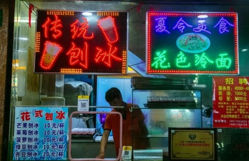 走进南京西路的王家沙总店,门口冷面冷馄饨+刨冰的夏季宣传海报吸引了笔者的注意。据店员介绍,时至盛夏,冷面、冷馄饨、刨冰的销量攀升,是很多顾客进店必点的单品,尤其7月是刨冰销量最好的一段时间。