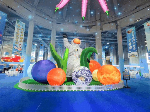 一进大门,满满的科幻感扑面而来,太阳系各种恒星、宇航员、水母等元素组成了一个奇妙的世界。