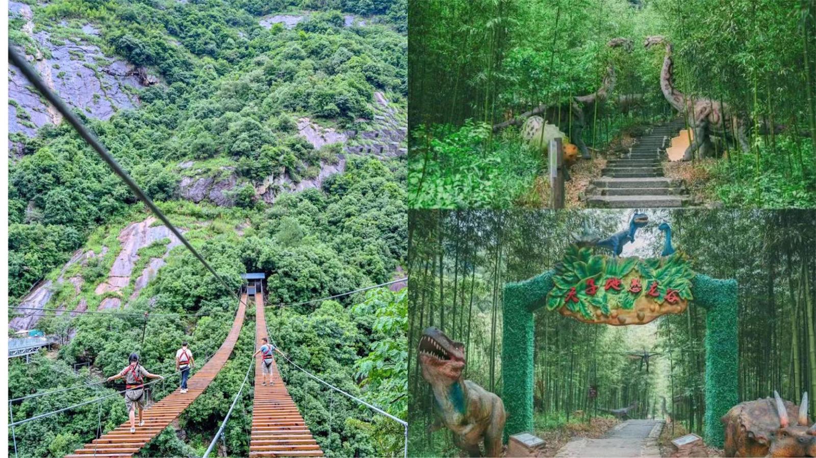 这里还有位于竹林里小朋友特别喜欢的天子地恐龙谷,几十只恐龙造型生动逼真,还有有趣的恐龙滑梯和骑恐龙的项目。而天子洞溶洞作为是国内最大的竖井式溶洞,溶洞里的钟乳石造型独特,洞内终年流水潺潺,适合避暑。