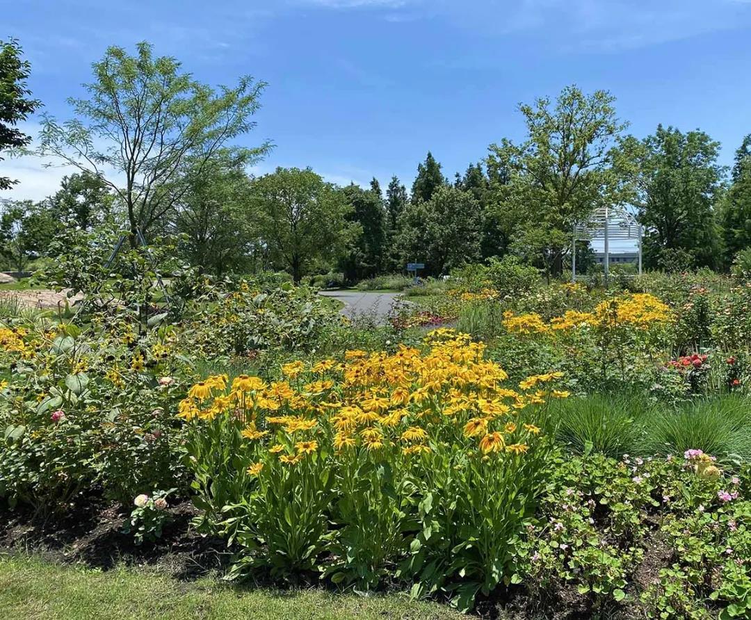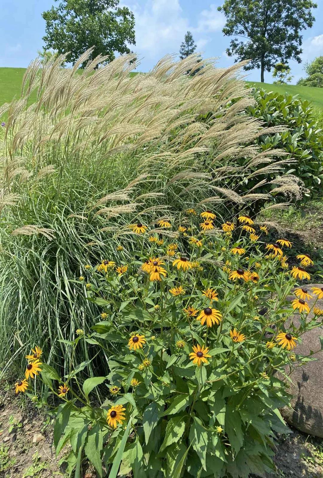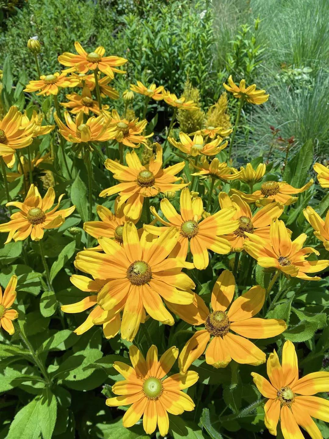 它们恣意生长在观赏草旱溪花境中,一朵紧挨一朵,或整整齐齐,或高高低低,姿态各异,毫不在意这炽烈的阳光,肆意绽放着笑脸。