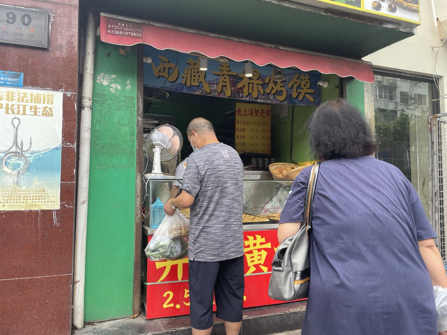 除了食材,这里还有不少现成的好吃的。菜场旁边有一家青稞馍,5块钱3个。