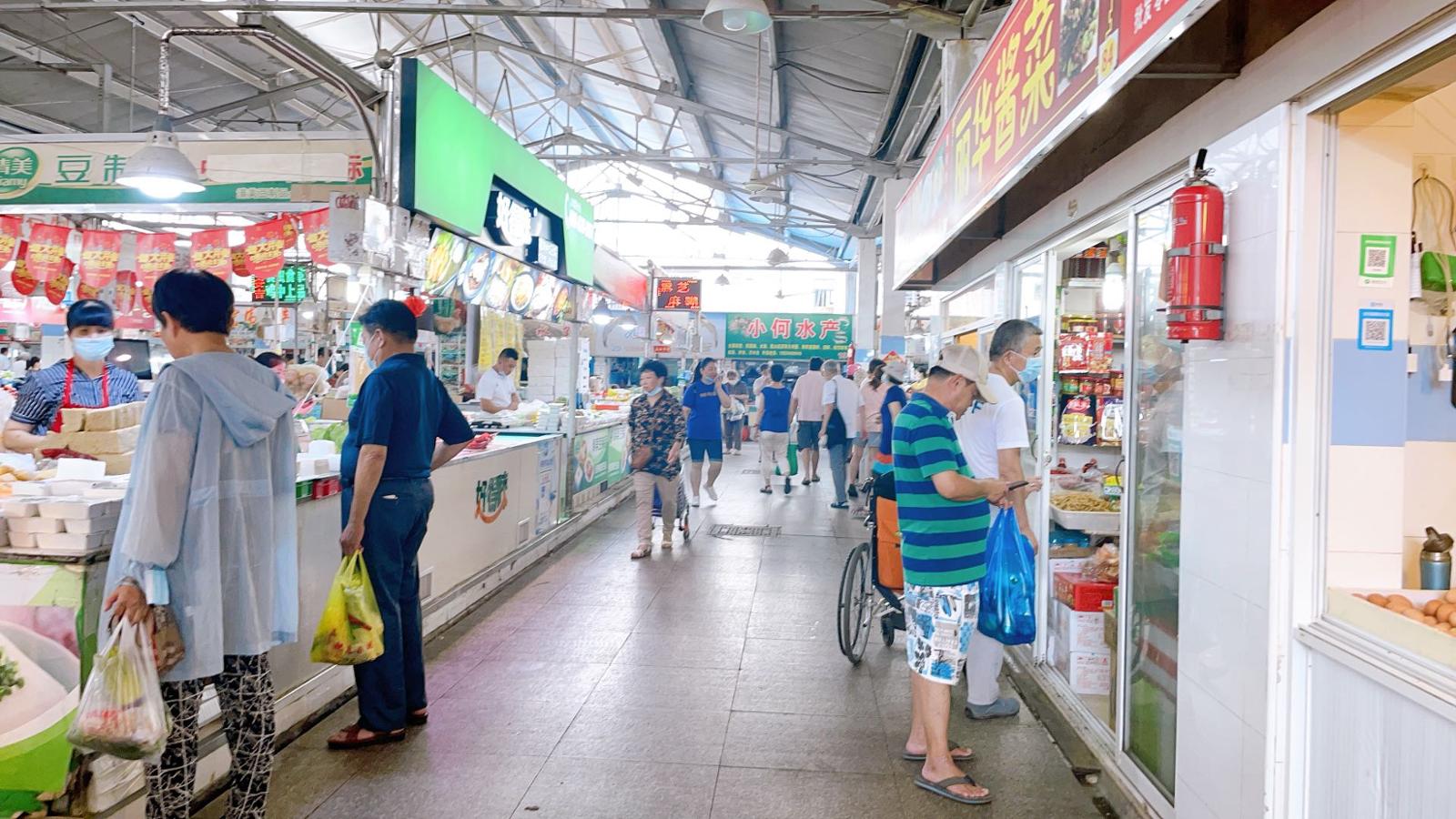 刚进门口,就有一个卖早点的小摊,我到的时候是早上9点多,已经卖得没剩多少了,摊主说早上除了来买菜的人,也有不少附近的职场人士到摊位上买早点,千层饼、豆浆等都方便打包带走。