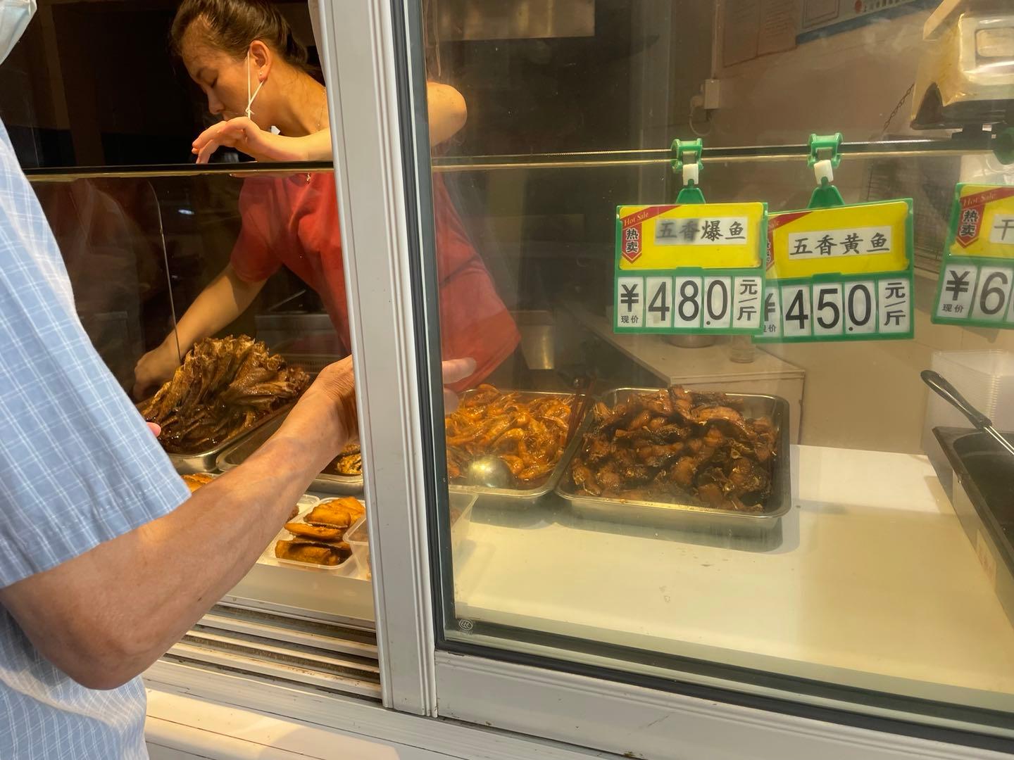 这家熟食凉菜店门口一直排着队,刚买好的阿姨说一直在这里买,味道不错。