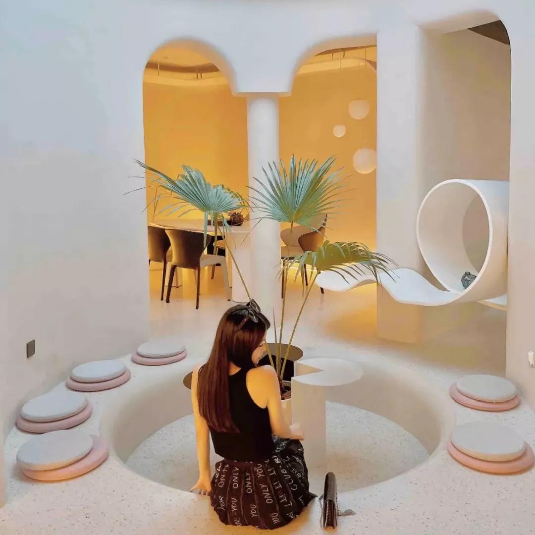 室内是设计感十足的工业风,满满的绿植搭配原木色座椅,宛如夏日海岛!