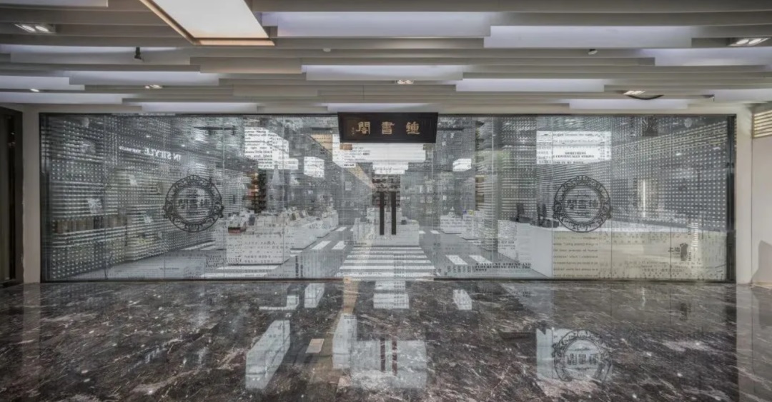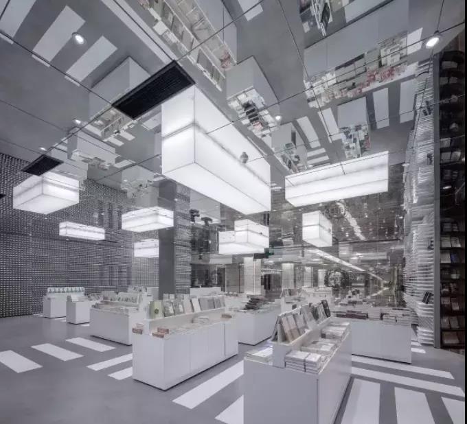书店以上方镜面映射作为设计理念,展现了上海这座繁忙城市的缩影,表达了一种蕴含浓郁文化气息的都市风景。