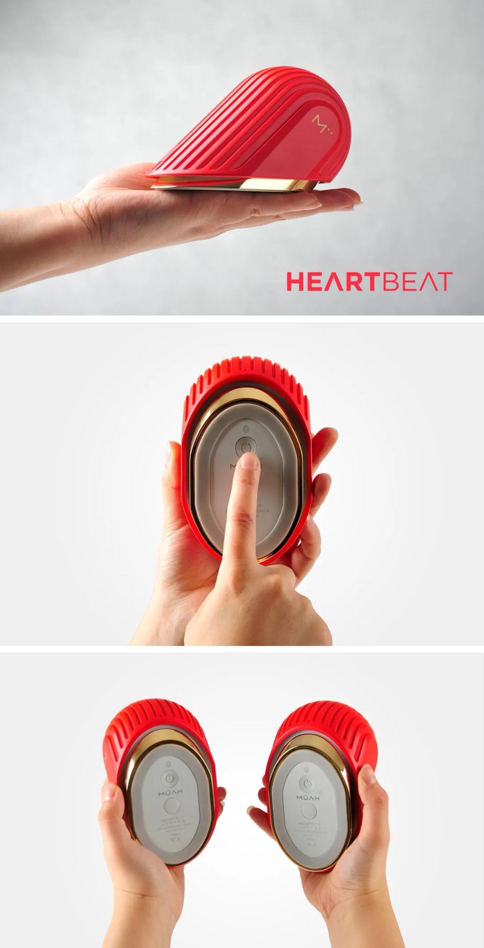 HeartBeat是一种新的便携式音频设备,它允许您体验到独特的交互关系。通过蓝牙将一半心跳连接到智能设备上,并且只要触摸底座一样容易,您可以将设备变形为心脏或胶囊形状,将它们一起播放。