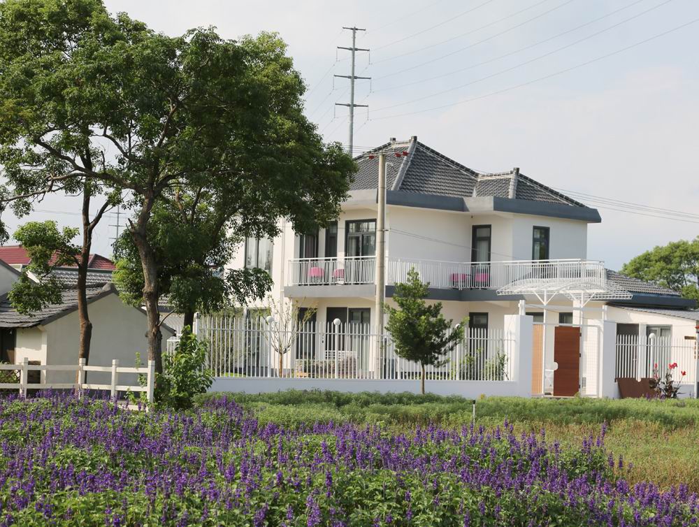 东方国际花卉设计总监任梦非介绍,成立于2019年的东方国际花卉公司,隶属于东方国际集团。公司充分发挥资源优势,把以色列的种子技术、荷兰的种植技术、保加利亚的花卉加工技术引入崇明,打造“一村一洲一平方公里”主题特色的“五洲四季花海”,经过一年多的施工建设,永乐村亚洲园首期建成,各类紫色系列的花卉开满园。10幢时尚精品民宿在设计装潢时的色彩与亚洲花园内的紫色花卉同色系,同时汲取了亚洲G20国家所代表的的经济、生态、文化和艺术水准;亚洲园每幢庭院民宿的命名,灵感源自于亚洲国家的国花,无论入住象征国色牡丹的“丹华”,亦或是温柔木槿的“槿瑟”,都希望能用诗情花意安抚来此休闲的旅人,感受到一份独有的写意和放松。