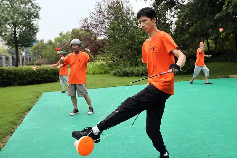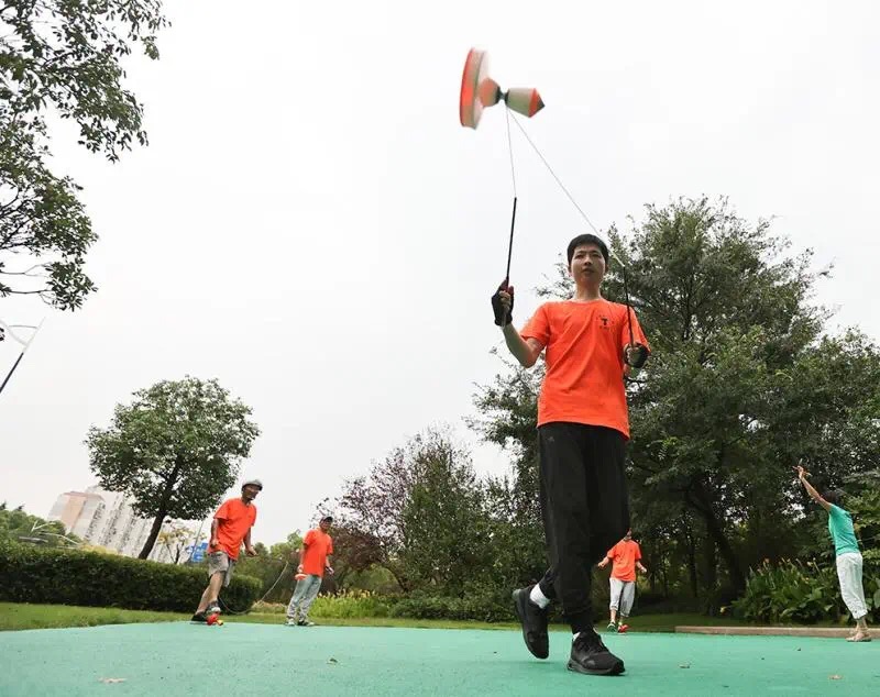 巴建国的空竹表演,曾在法国“明日国际杂技节”上荣获金奖,他自豪地说,自己从小学五年级偶然接触到空竹,到今天已与之相伴二十多年,“空竹作为非遗项目有着独特的魅力,一玩就停不下来,现在公园改造后,家门口就有专用场地,我再也不用跑到别的区啦!”金鹤公园负责人高宏伟介绍,空竹演练基地整体采用塑胶场地,能减少演练器材的磨损,空竹爱好者可全天候使用,不受季节、天气影响。
