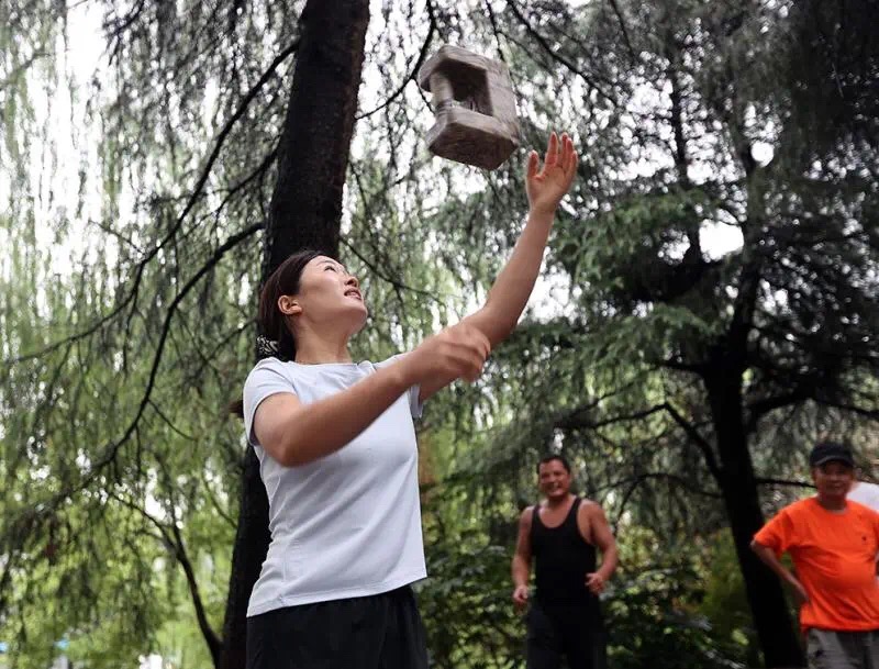 此外,金鹤公园东北角还有一处幽静坡地,专供石锁爱好者日常演练使用——