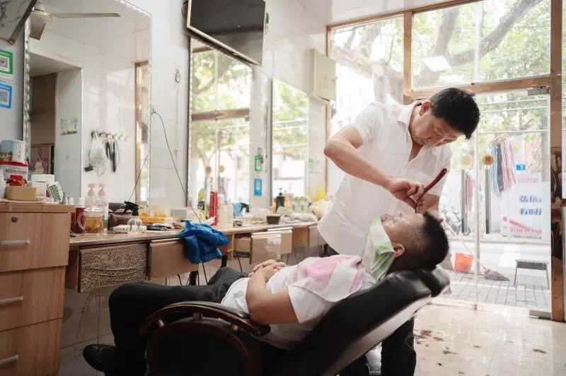 位于肇周路上的另一家老店,天桥理发店。师傅们正忙忙碌碌,为客人烫染头发。