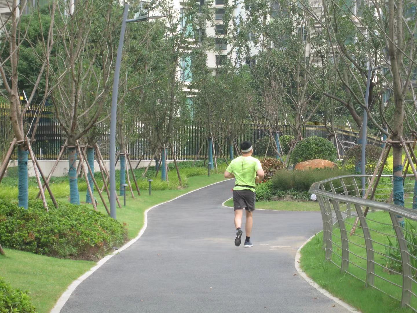 从知音苑社区大门向苏河沿岸前行,一条狭长的红色跑道会迅速牵扯你的注意力。
