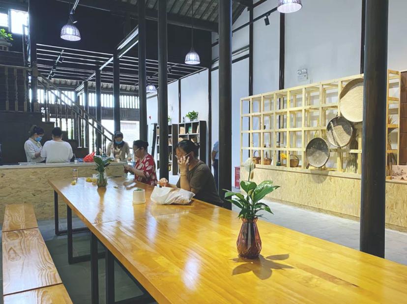 米行内还辟出了一休憩空间,置一长桌,参观者在休息的同时,还能品尝用松江大米熬成的米粥。