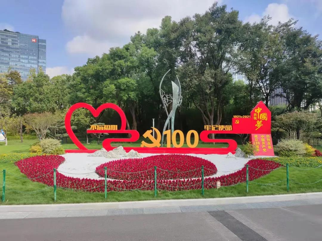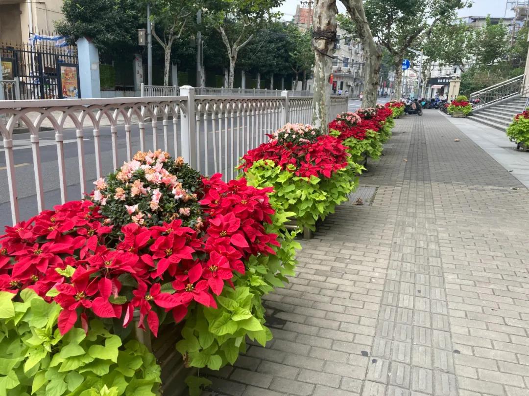 为喜迎国庆,杨浦区以“中国红元素”为设计理念进行花卉景点布置,主要在主题景点、绿地花坛花境、容器花箱三个方面展开,主题景点扮靓街头、绿地花坛花境营造氛围、容器花箱装点杨浦。