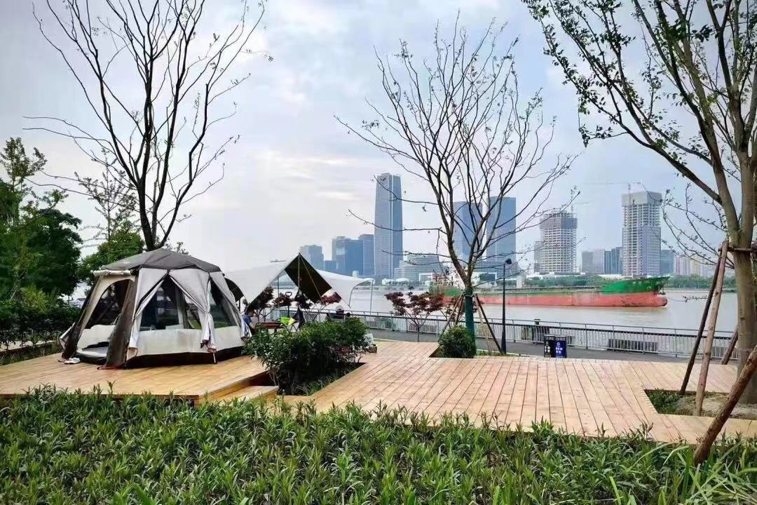 在滨江的花草林荫中搭个帐篷,吹着江风看着江景……随着耀华滨江绿地景观完成改造,浦东东岸滨江首个帐篷营地向市民开放。这里可容纳200个常规帐篷,周边配以湿地、地被花海景观,满足了游客穿林越草、搭建帐篷休憩的需求,成为目前滨江唯一一处开放可搭帐篷的绿地。市民可关注“耀华滨江绿地”公众号进行预约。