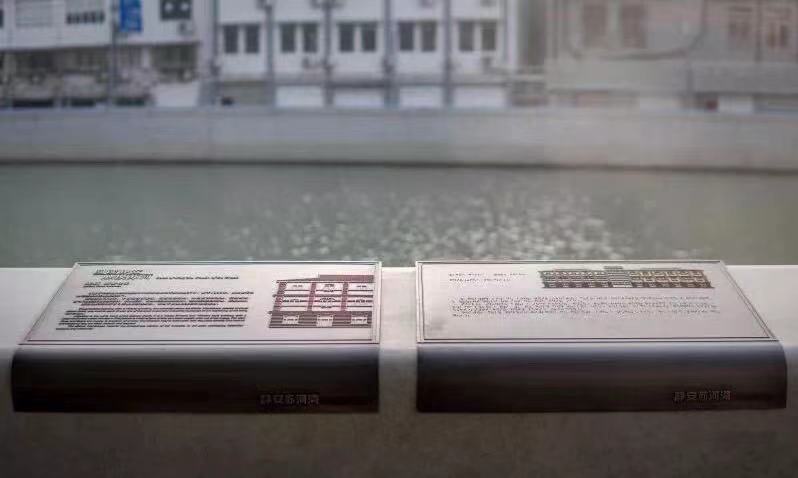 苏州河两岸(静安区)公共空间选用海派ART DECO建筑装饰符号,将城市记忆雕琢在防汛墙侧,并镶嵌复古马赛克。晚间星光墙体,呈现浪漫风情。防汛墙顶镌刻建筑故事铭牌,将建筑赋予阅读,文字化为盲文,让城市诗意飘荡在苏河水岸。这里镌刻有优美的诗篇,将静安苏河湾幻化为人文阅读的河流,人民书写的水岸,城市关怀的滨水。
