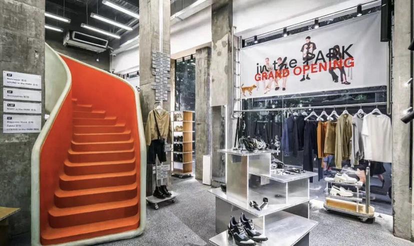 推荐你逛逛占据3层楼的买手店in the park,在主入口处设计了花坛和复古的竹凳,很有上海弄堂的味道。