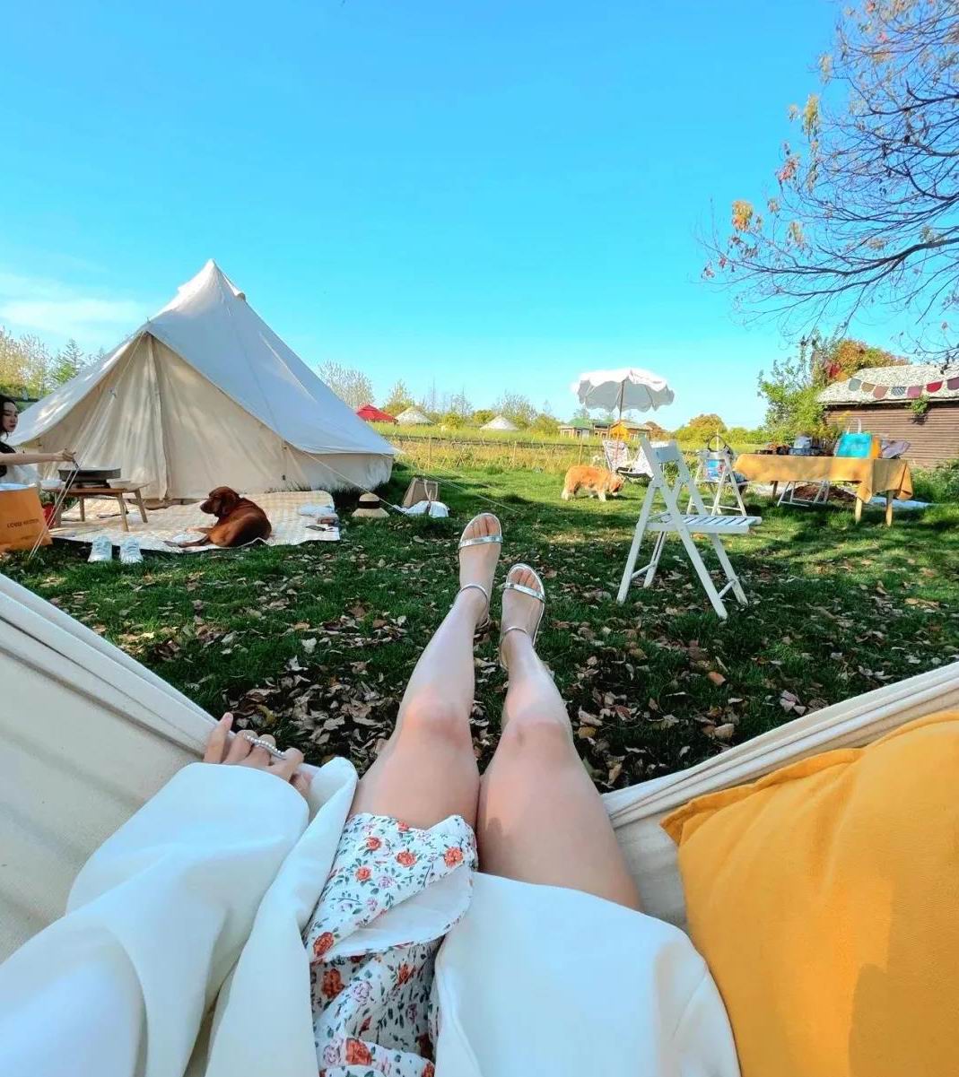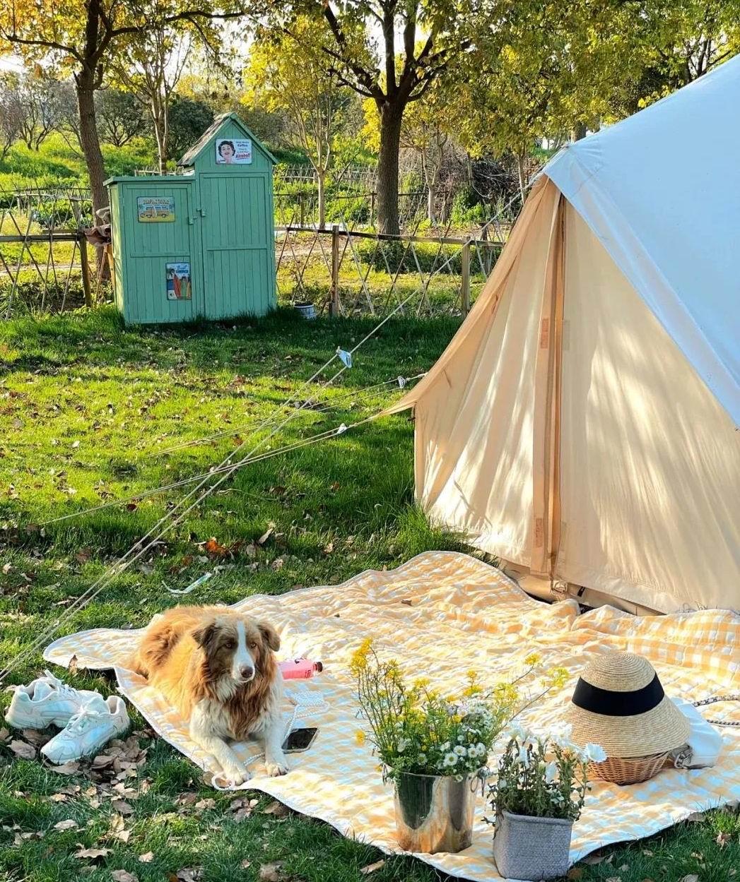这里的民宿还是宠物友好民宿,狗狗们在堪比国外的小农场上尽情撒欢,主人则在帐篷里发呆,看日落平淡生活里的幸福感就在这里油然而生。