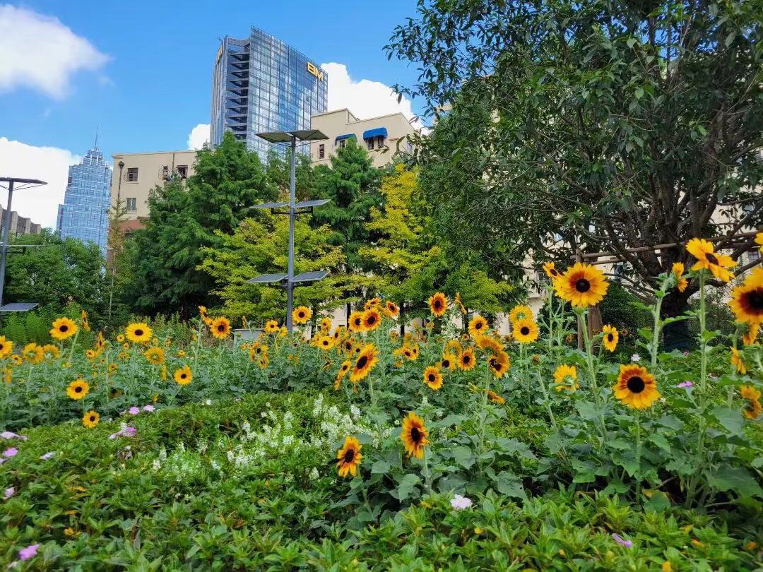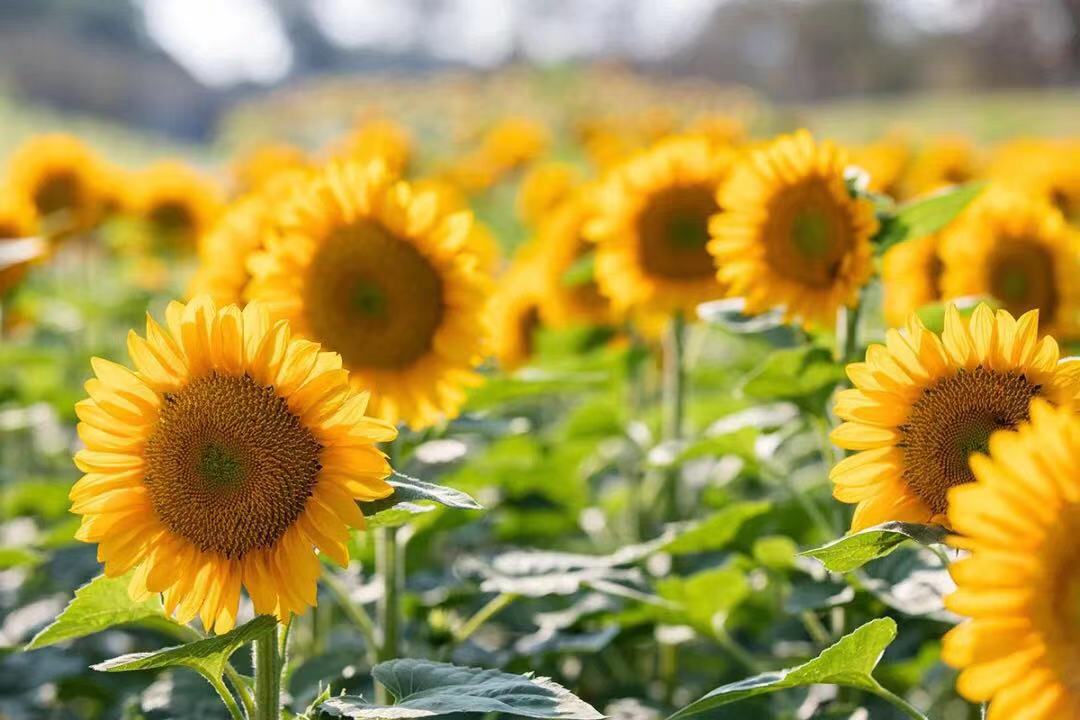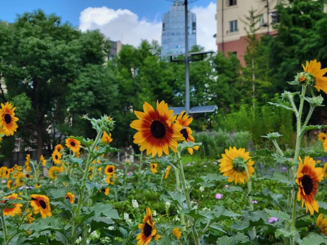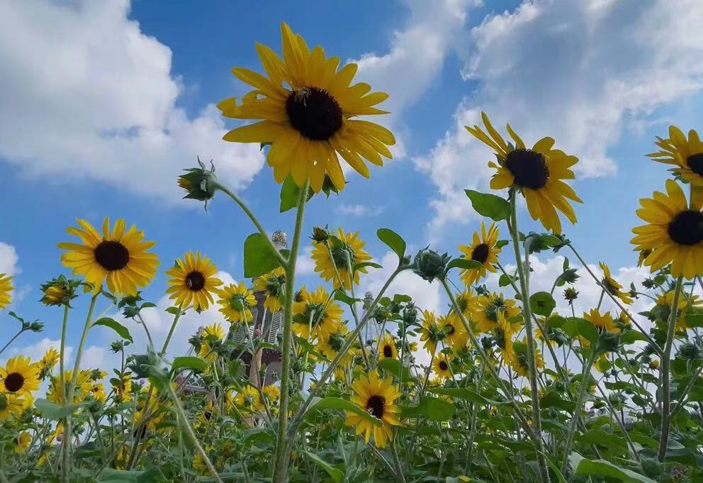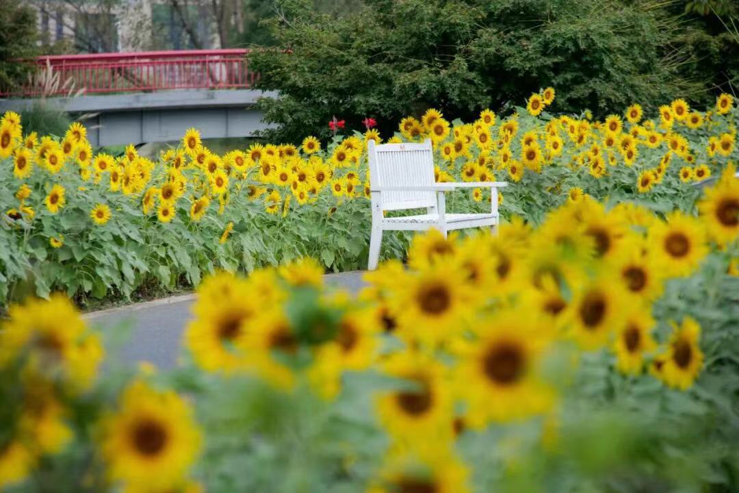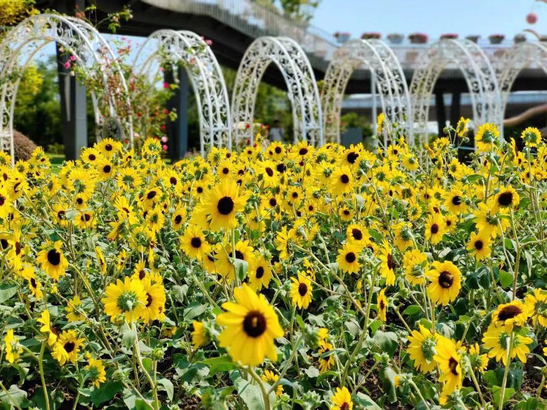 辰山植物园、上海植物园、浦江郊野公园、旅顺路绿地、长治路168花甸、花开海上生态园的向日葵迎来了最佳观赏期。朵朵金黄的向日葵在花丛中绽放,成片的向日葵花海映衬着湛蓝的天空,如同置身于油画世界。