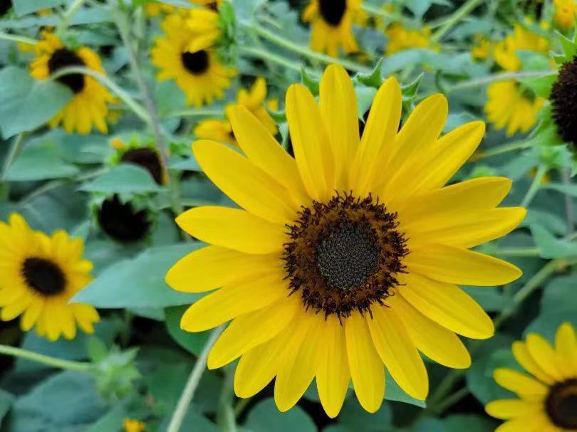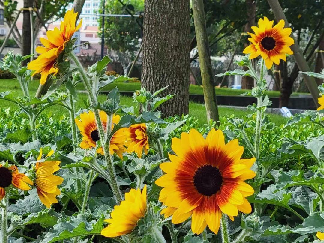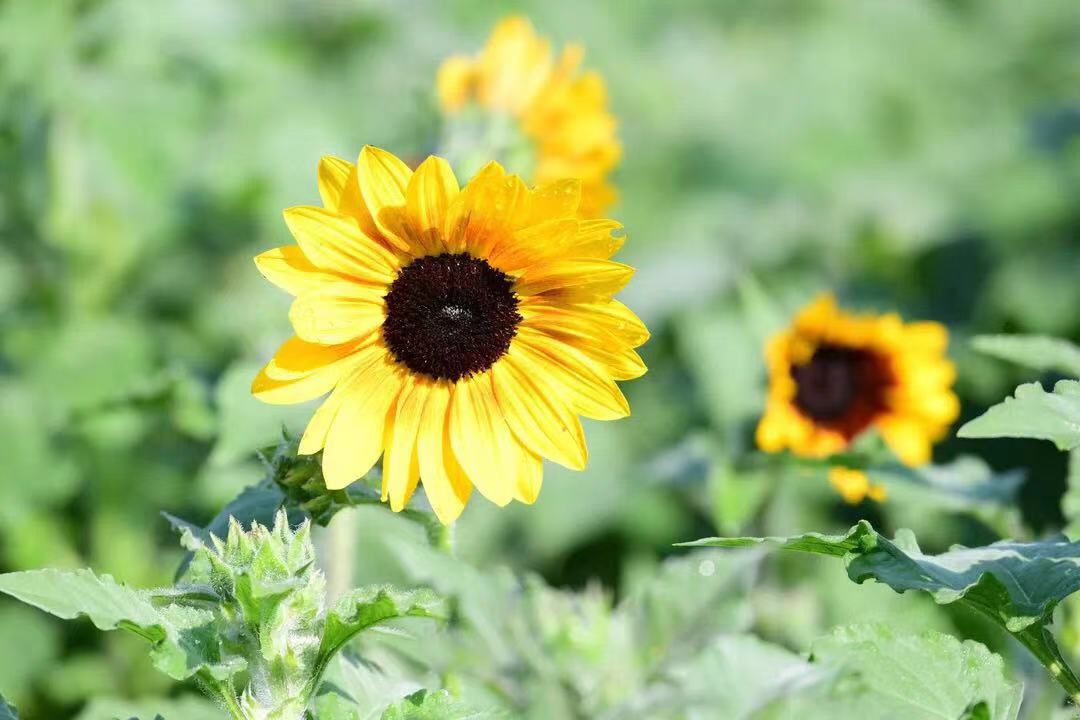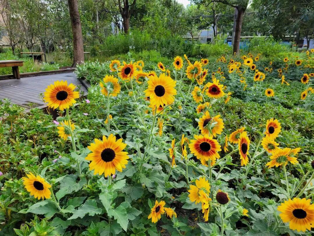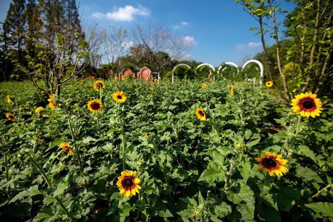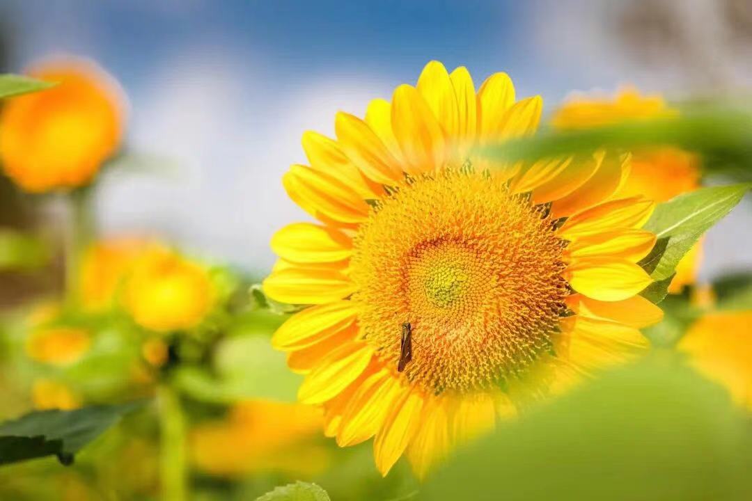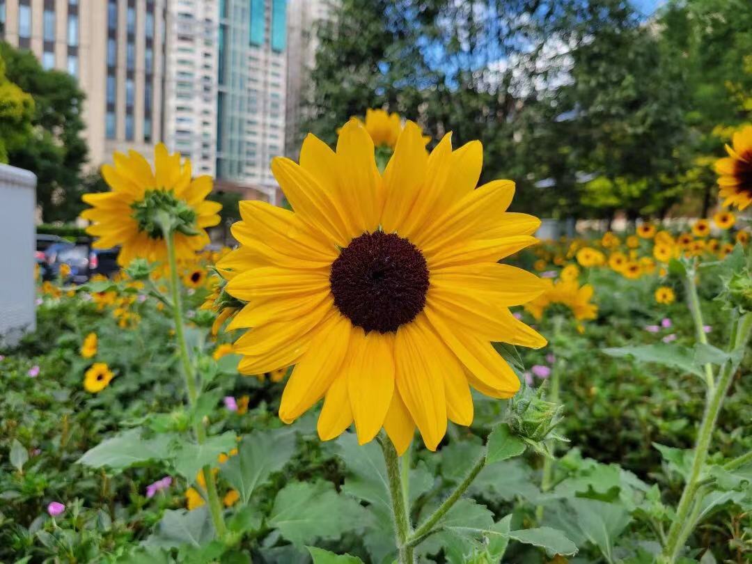 辰山植物园、上海植物园、浦江郊野公园、旅顺路绿地、长治路168花甸、花开海上生态园的向日葵迎来了最佳观赏期。朵朵金黄的向日葵在花丛中绽放,成片的向日葵花海映衬着湛蓝的天空,如同置身于油画世界。