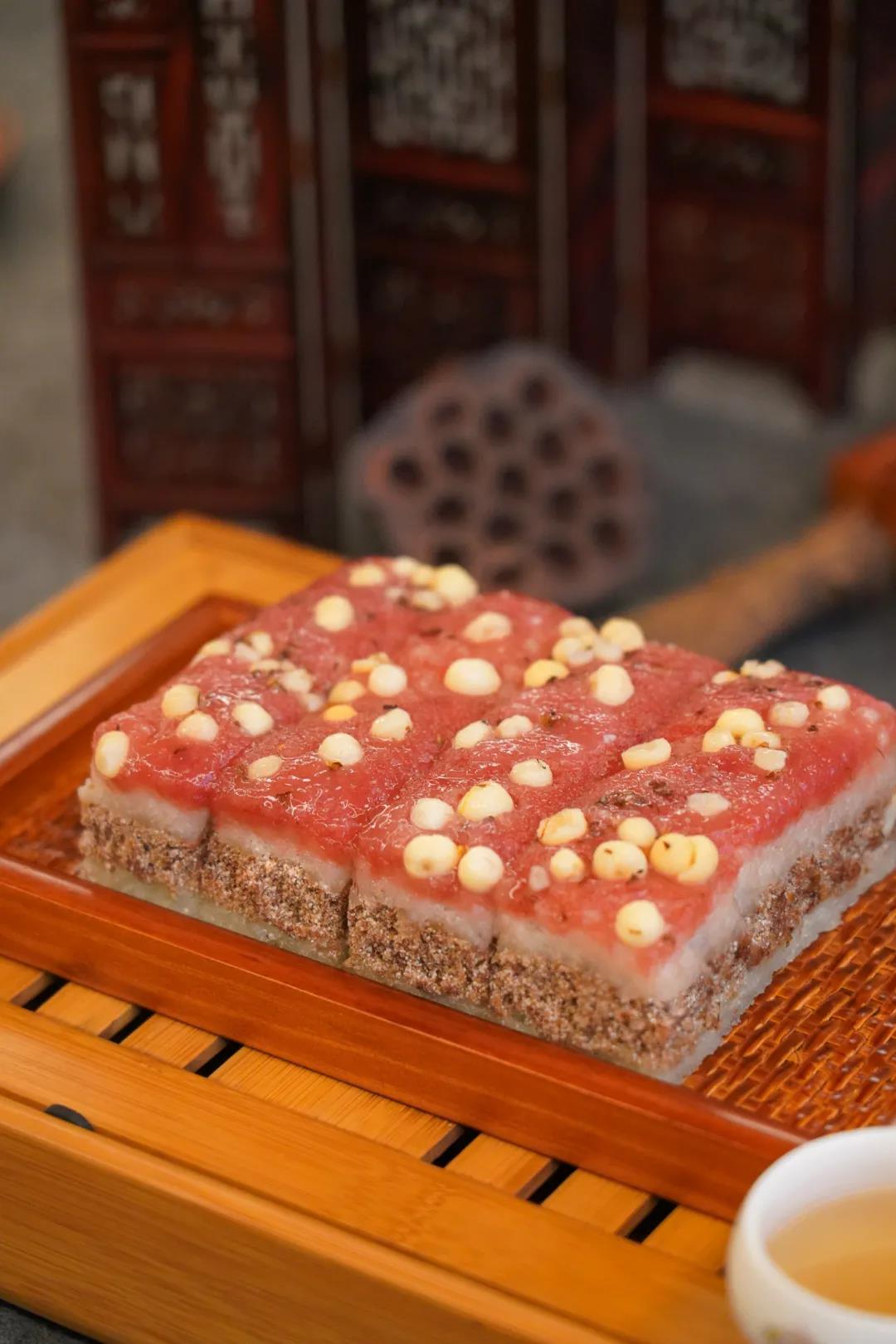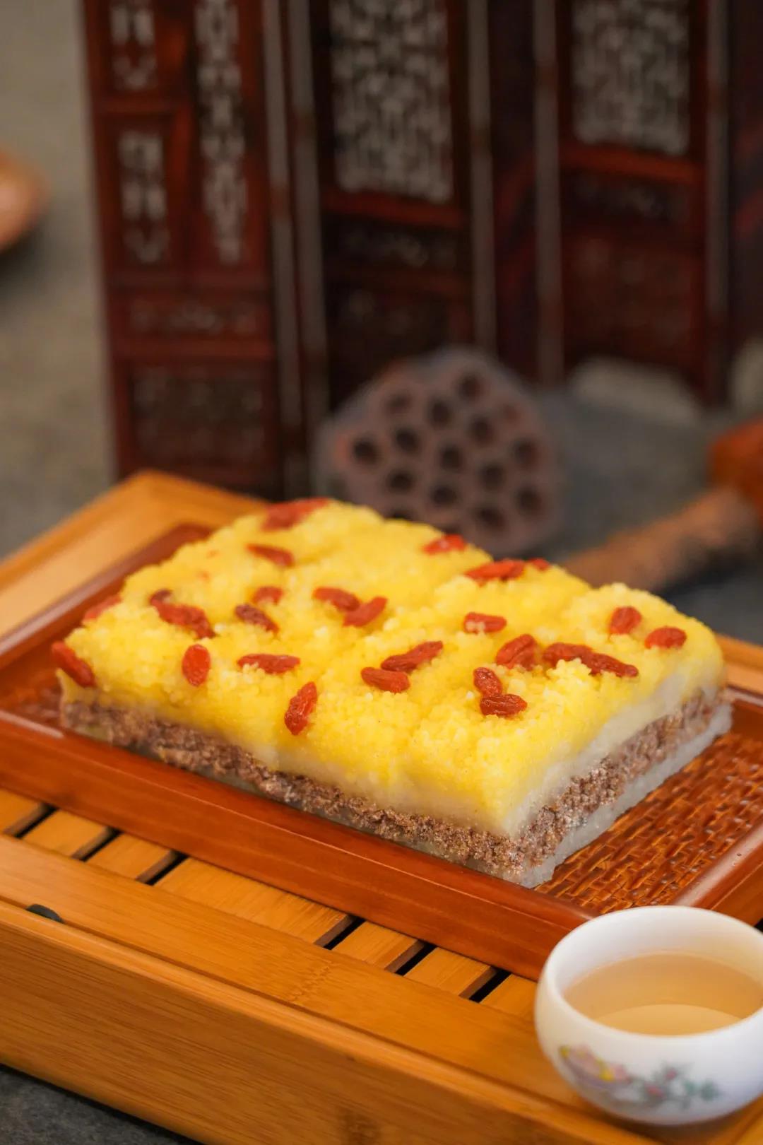 新雅今年的现制重阳糕有小米重阳糕、桂花鸡头米重阳糕、传统重阳糕(原味)、特色重阳糕(赤豆味)等几种。 其中,小米重阳糕厚铺的一层黄小米搭配枸杞,颜色自然艳丽,粗精粮混搭,少油减糖,清香扑鼻!桂花鸡头米重阳糕,将研磨后的红曲米做成糕的表层让糕体更添节日喜味;软糯清甜水嫩嫩的鸡头米搭配桂花与糕,细细品鉴,越嚼那米味桂花香味越浓!