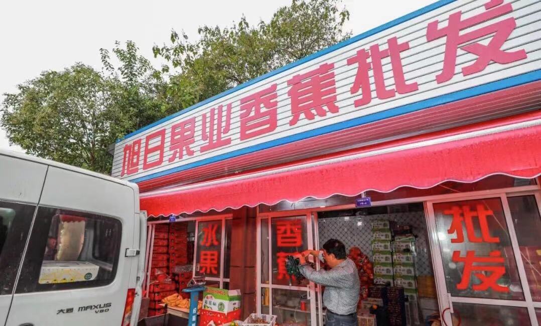 这里多家店铺内置冷库,一位店主说,每天店里进出货的香蕉在1000箱以上,香蕉对温度非常敏感,过低会导致冷害,过高则不能正常转黄,现在配置了专业的保鲜冷库,能够更好地延长香蕉保鲜期。