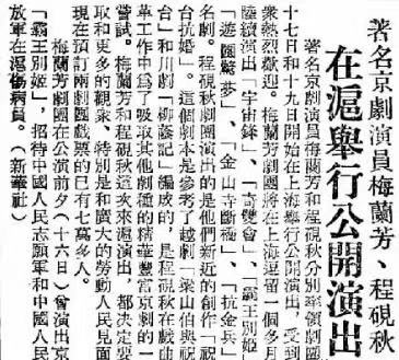 1945年11月,梅兰芳在沪举行公开演出的新闻报道