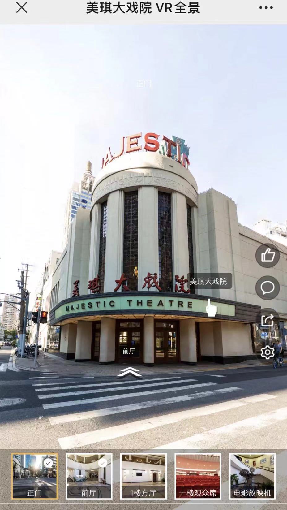 美琪大戏院80周年360°线上展已经上线,点击“上海美琪大戏院”微信公众号,下方工具栏“服务-美琪VR展”,即可浏览美琪大戏院的全景全貌以及各个区域、装饰背后所蕴藏的历史故事。