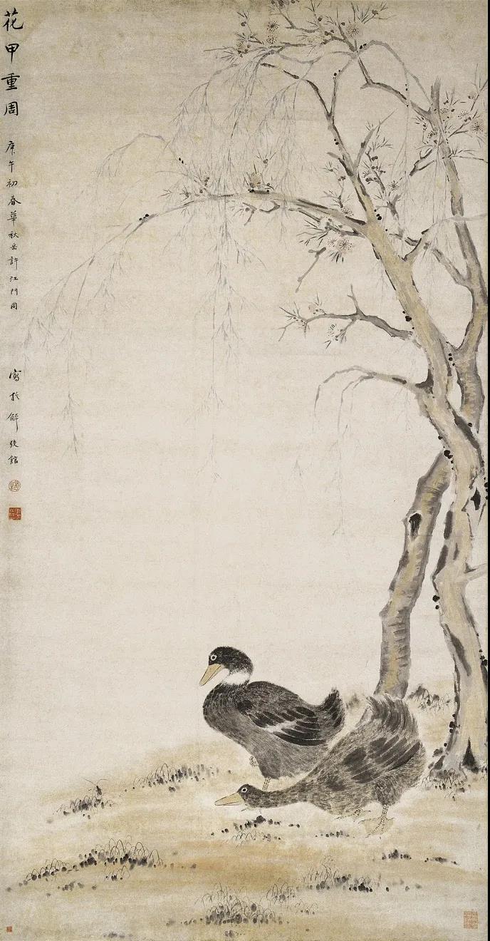 华嵒、许滨 《桃柳双鸭图轴》 苏州博物馆藏