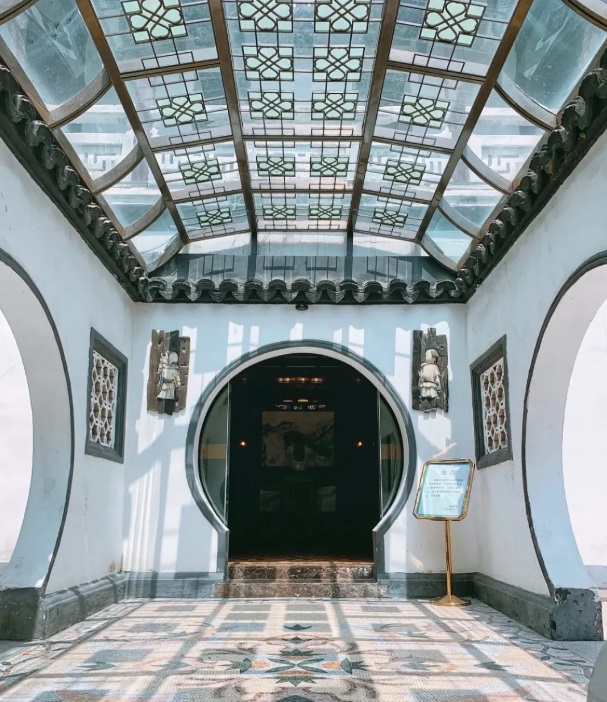 相比飞香厅茶室,四教厅茶室更加静谧,也更加有韵味,厅堂里播放着古韵的曲调,随处可见都是古董级的物件儿和书籍,氤氲茶香中,当年上海滩的风云变幻、大佬的跌宕人生仿佛就在昨天。