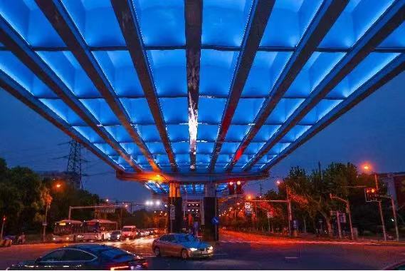 宝杨路灯光改造以“友善的公共空间,活力的幸福街道”为主题,建设内容包括宝龙广场人行天桥、两侧行道树等灯光、围墙灯光、淞沪抗战纪念馆门头、上海解放纪念馆门头等。