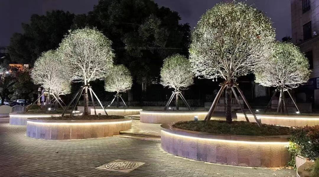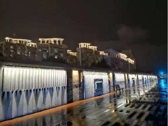 牡丹江路林荫道景观灯光建设项目突现牡丹江路繁华的商业氛围和舒适的生活社区空间。街头的互动灯光增加了灯光的趣味性,大气的楼宇投光灯提升了牡丹江路商业的繁荣、繁华;富有层次的绿地灯光弥补了功能性照明的不足。