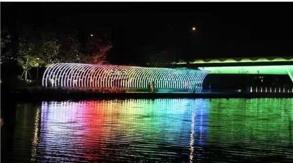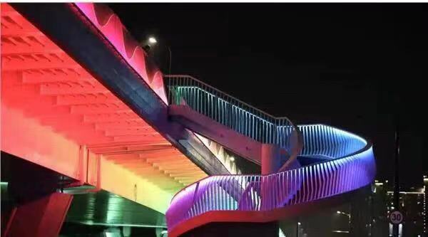 新开通的文耀路也是非常的靓眼,在运河两侧可以欣赏桥身七彩的渐变,桥两侧上下的楼梯也是非常绚丽。