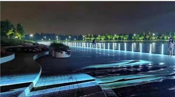 浦南运河南桥路至金汇港已全面贯通,沿着浦南运河两侧步道,可以感受绚丽的灯光。